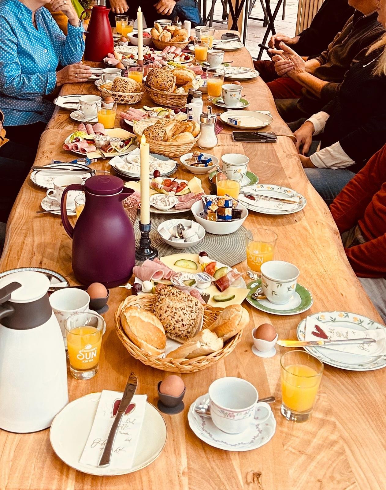 Im Café Mi Vida backen wir mit Herz: knusprige Brötchen, cremige Kuchen und feine Torten - alles selbst gemacht! Unsere gemütlichen Holztafeln, Samtsessel und die blühende Terrasse laden zum Verweilen ein – ob zum Frühstück mit Freunden oder zum Kuchen am Nachmittag.